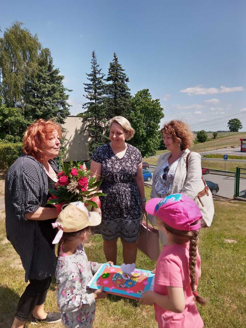 W dniu Dnia Dziecka Pani sekretarz Anna Maćkowska oraz Pani skarbnik Joanna Riesop w imieniu wójta Mariana Krywalda odwiedziły przedszkola w Drzycimiu i Sierosławiu rozdąjc słodkości zgromadzonym dzieciom. Dzieci z Przedszkola w Drzycimiu przekazały na ręce pani skarbnik i sekretarz życzenia, kwiaty oraz bombonierkę z okazji Dnia Samorządowca. Było sympatycznie, kolorowo i wesoło. W tym samym czasie wójt odwiedził osobiście Przedszkole w Gródku przy okazji nadania Szkole Podstawowej w Gródku nowego sztandaru.